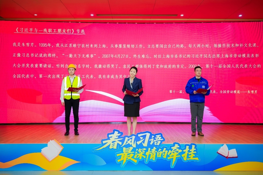 “读着书里的故事,就像是在和老朋友对话,每一句嘱托都沉甸甸的。”朱雪芹的这份感怀,也正是现场无数一线劳动者的共同心声。昨天,第28届上海读书节首场场景读书会——“春风习语·最深情的牵挂”专场学习分享会在此开启。